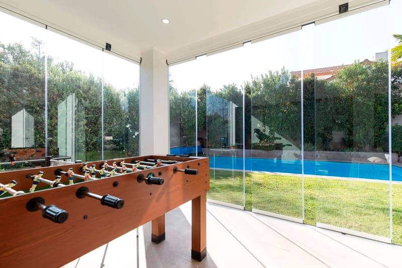 Disfruta de tus espacios exteriores todo el año con el sistema de cortinas de cristal plegables, creado por Lumon, la empresa líder mundial en cerramientos sin perfiles verticales. Gracias a su innovador diseño, obtienes una vista panorámica sin interrupciones, máxima entrada de luz natural y protección frente al viento, la lluvia y el ruido.